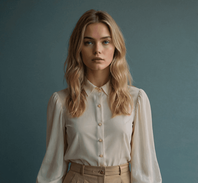 The Evara Champagne Whisper Silk Blouse captures the art of subtle glamour with its minimalist charm and graceful movement. Crafted from pure silk in a delicate champagne hue, the fabric shimmers gently under evening light, offering an aura of quiet confidence. The blouse’s tailored design, featuring soft puffed sleeves and classic pearl buttons, adds a touch of refinement that feels both modern and eternal. Ideal for elevated dinner gatherings, cocktail nights, or intimate celebrations, this piece blends simplicity with sophistication. Pair it with high-waisted satin trousers or a flowing skirt for a look that whispers elegance with every turn.